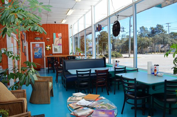 “ We had a great dinner of their famous fish tacos and grilled snapper platter (a bit too much black pepper seasoning). The street corn was fantastic! Loved their she-crab soup. Next time, I will try their tuna chili. Service was friendly. You order at the counter next to draft beers) and pre-pay first. Then you are assigned a number placard, seat yourself, and their nice staff will bring ordered food to your table. ”